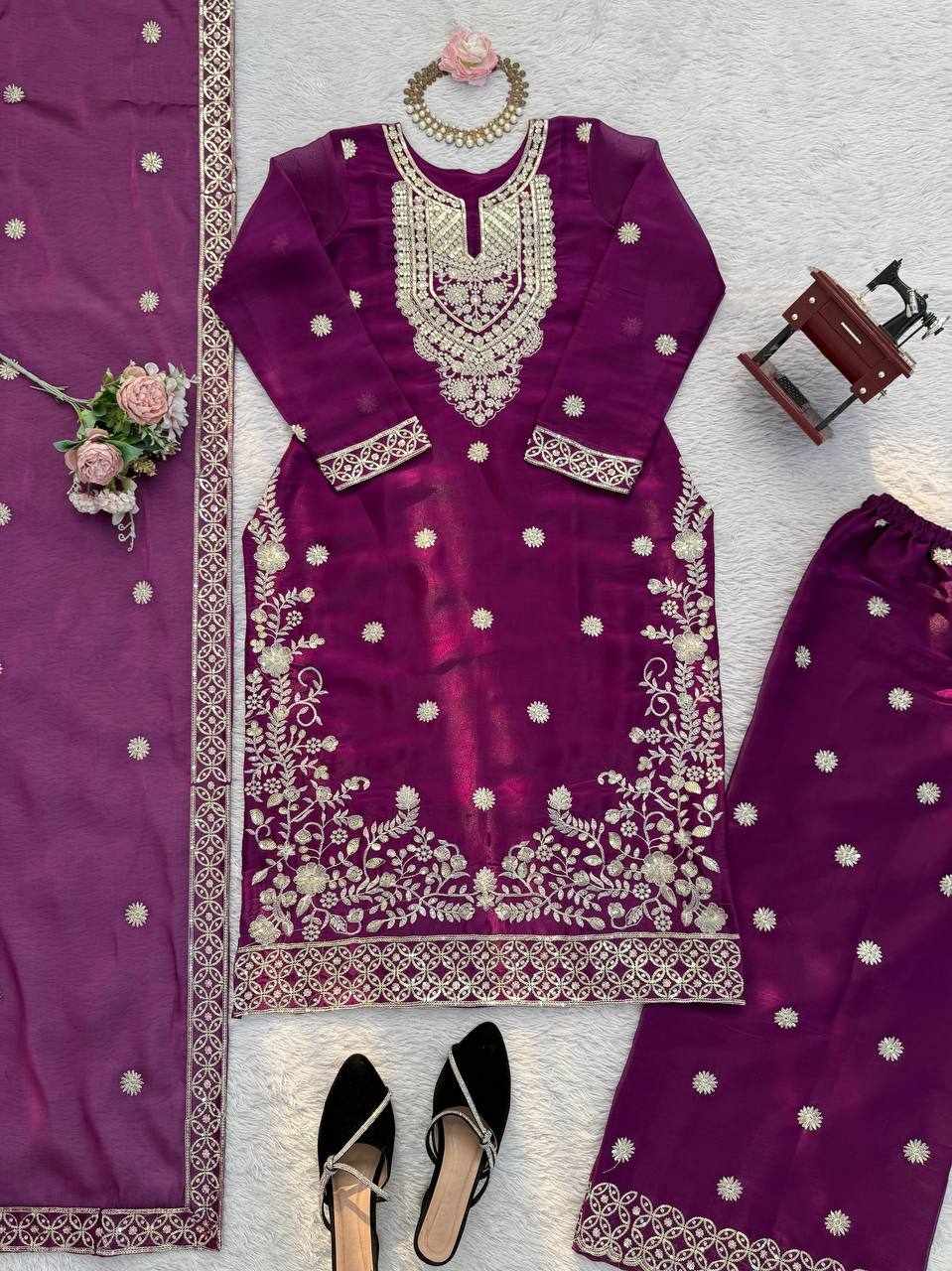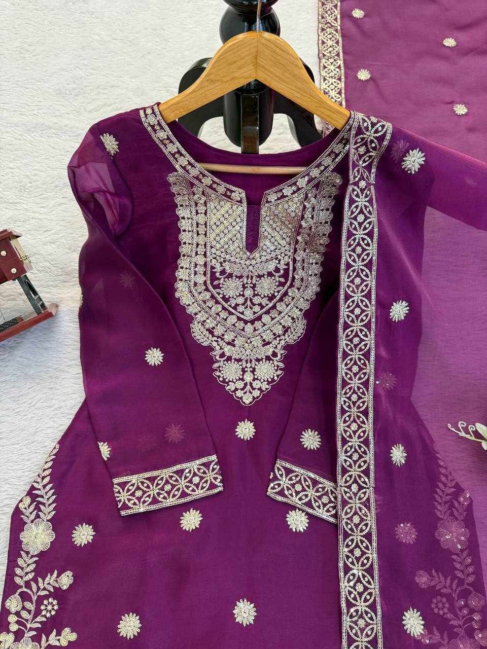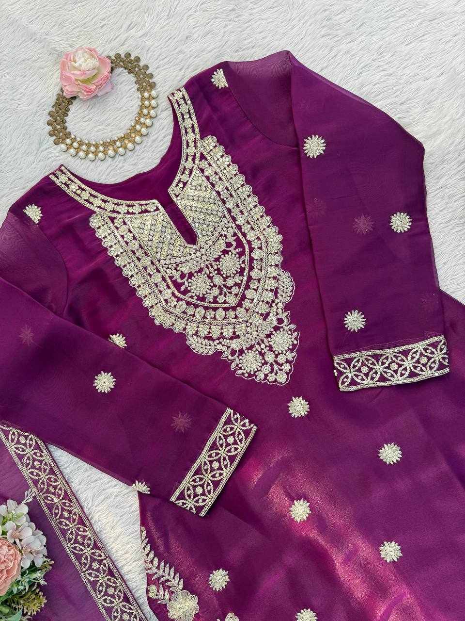JKWH 999 Pure Fine Cotton Febric Embroidery Work A-line Kurti Set With Pocket