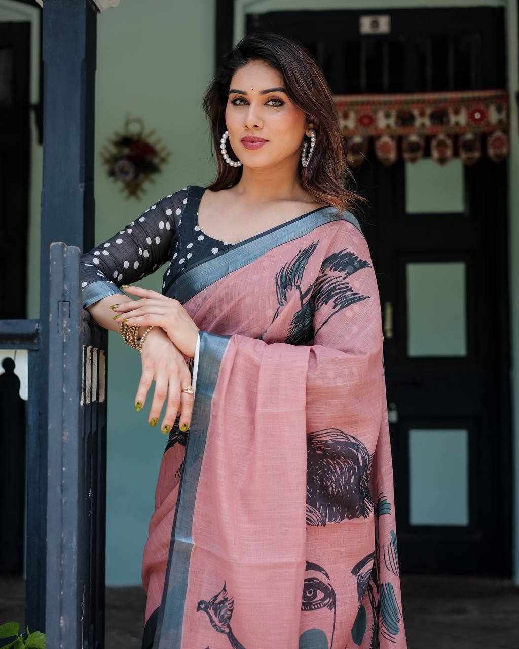 Saree Fabric: Silver Weaving Patta Linen Cotton