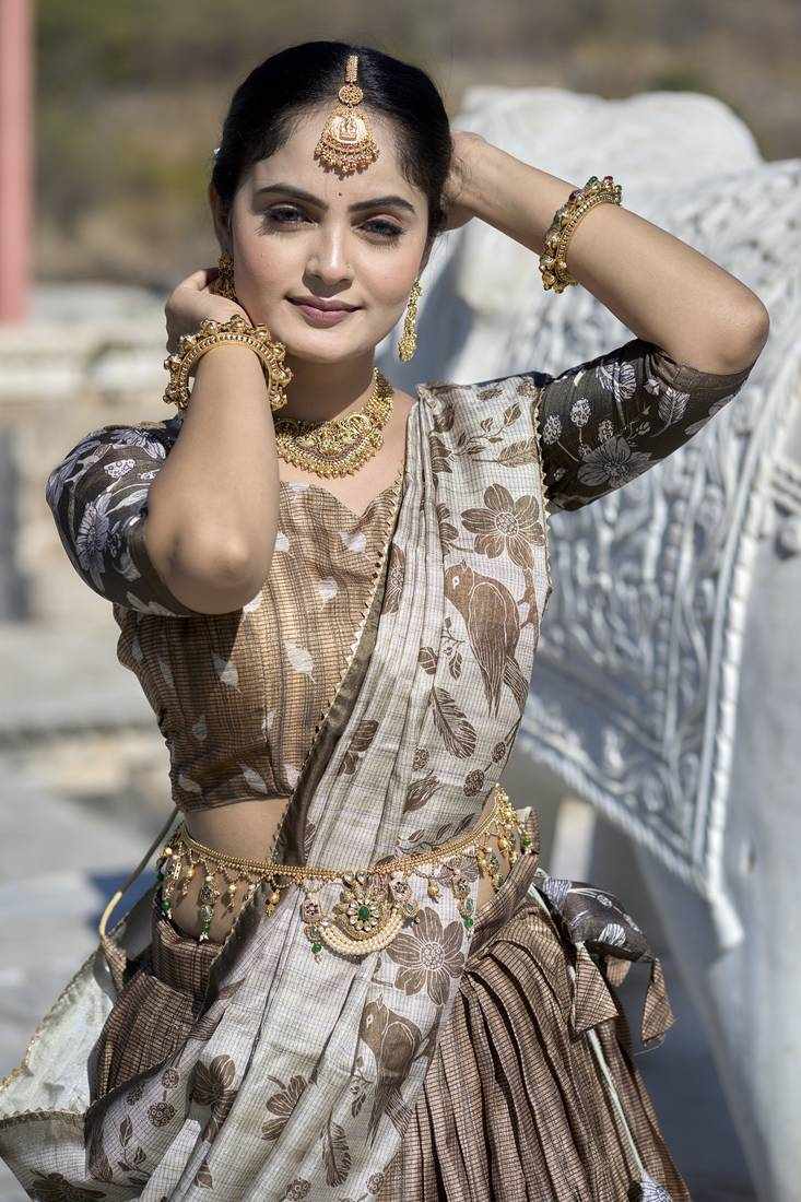 | Name : | PIYU 27-1 Silk Digital print Brown Lehnga |