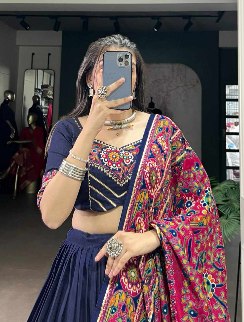Reviews for PIYU 29-1 Silk Chaniya Choli With Viving Foil Navy Blue Lehnga