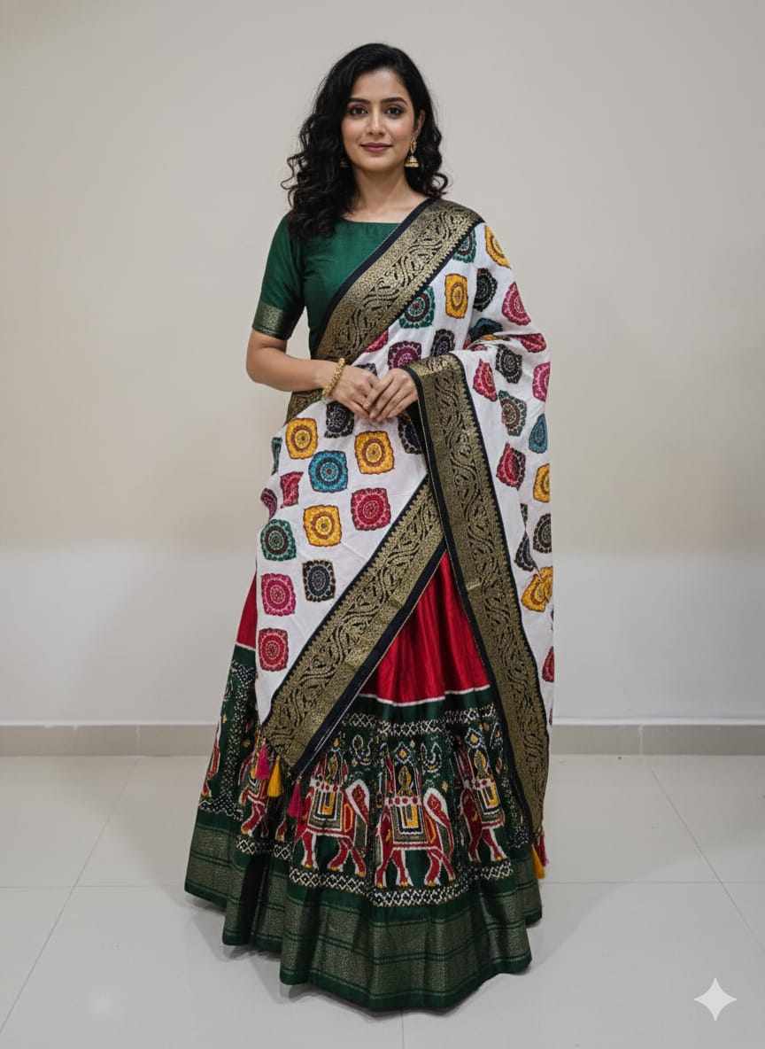 | Name : | PIYU 31-1 Silk Chaniya Choli With Viving Foil Green Lehnga |