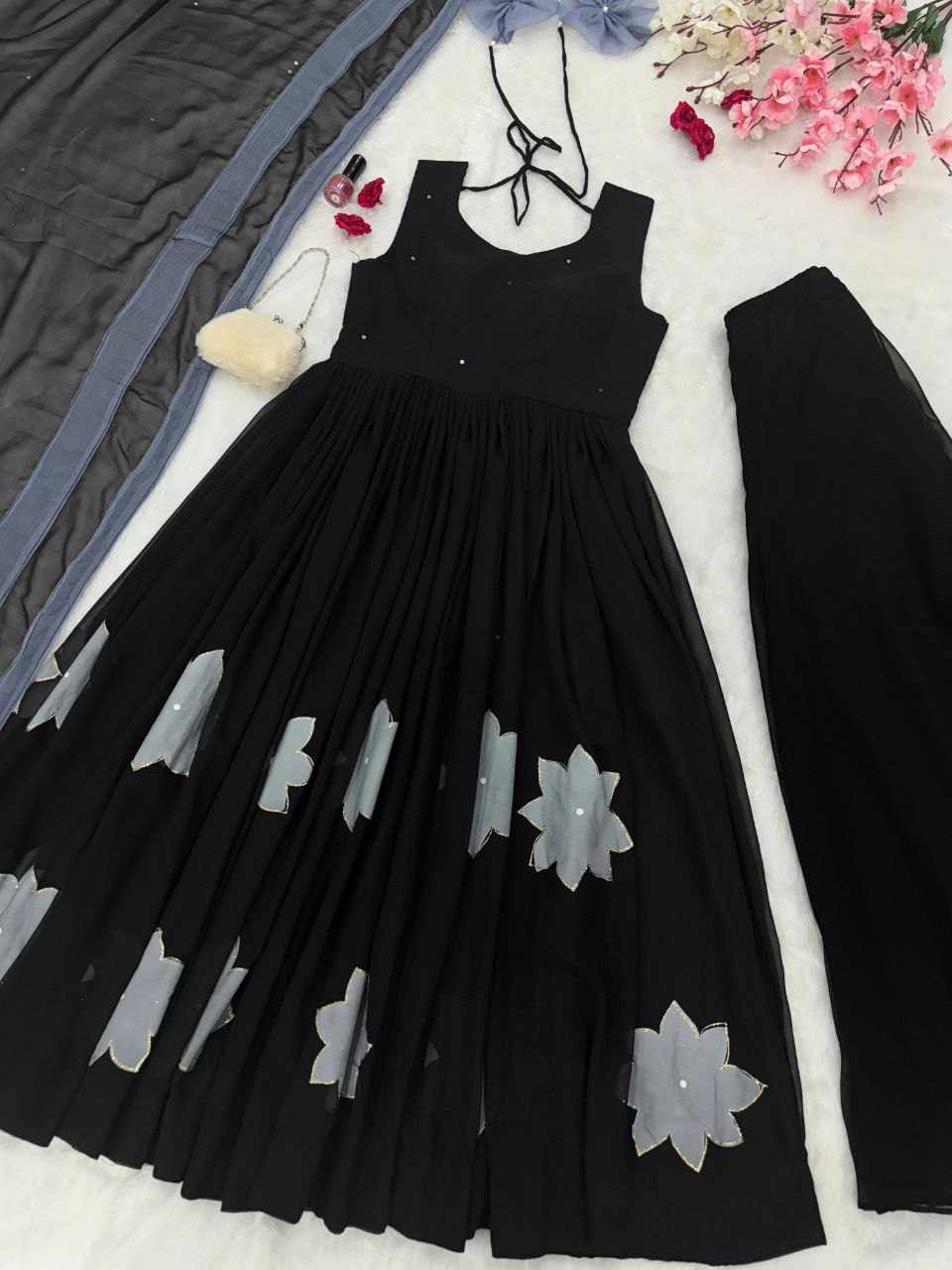 Plazo – Pure georgette flared plazo, fully stitched for a perfect fit