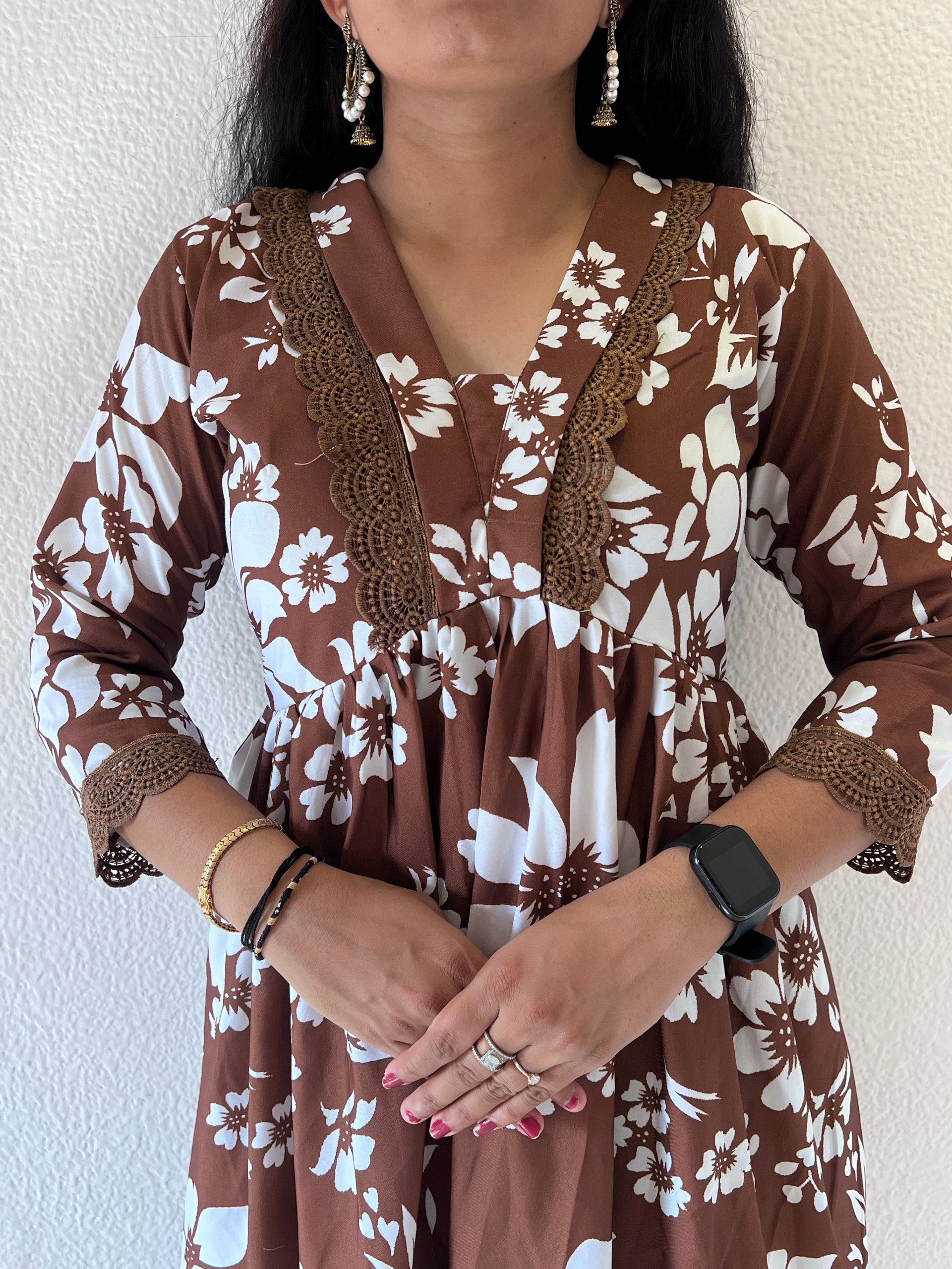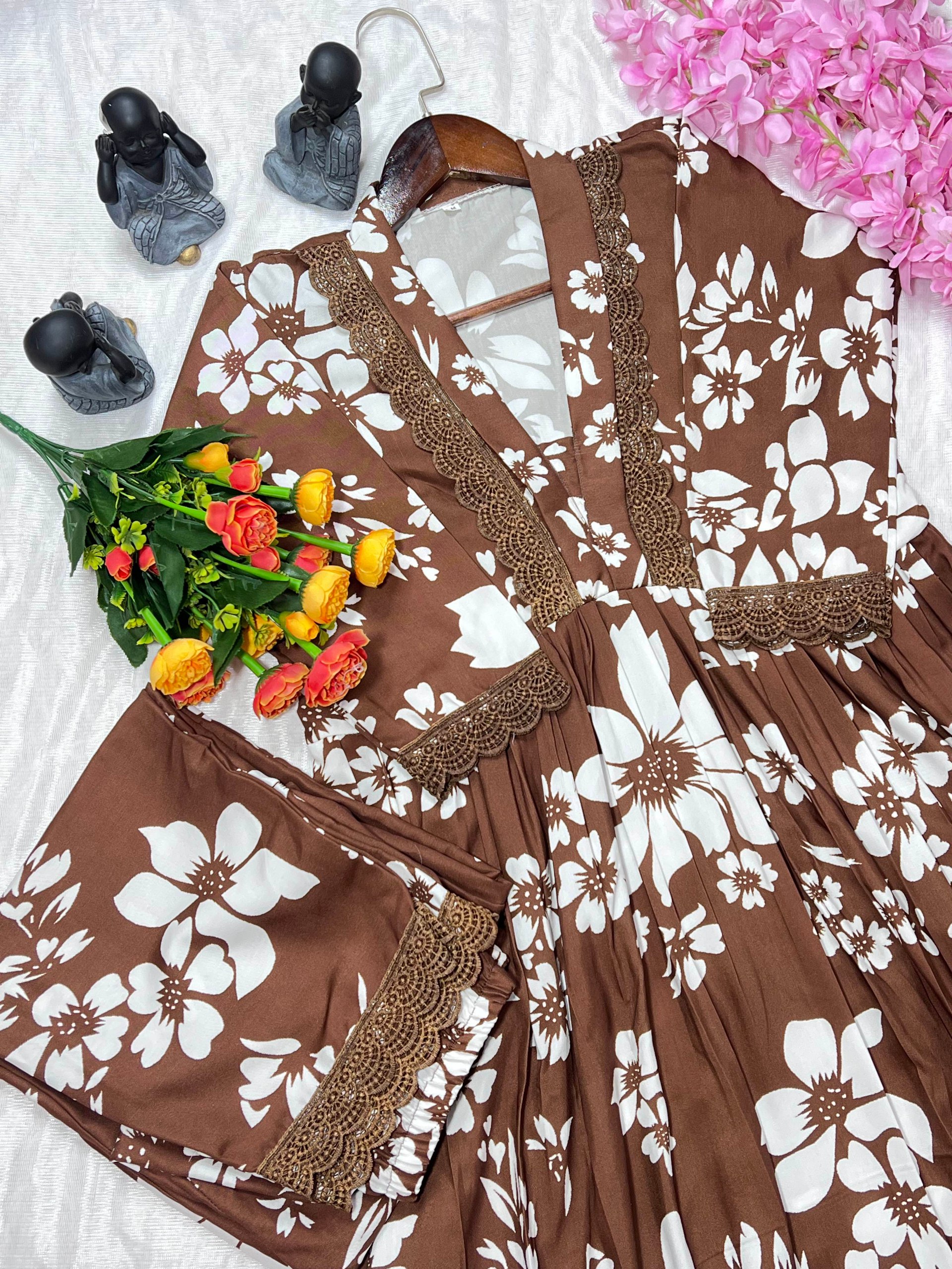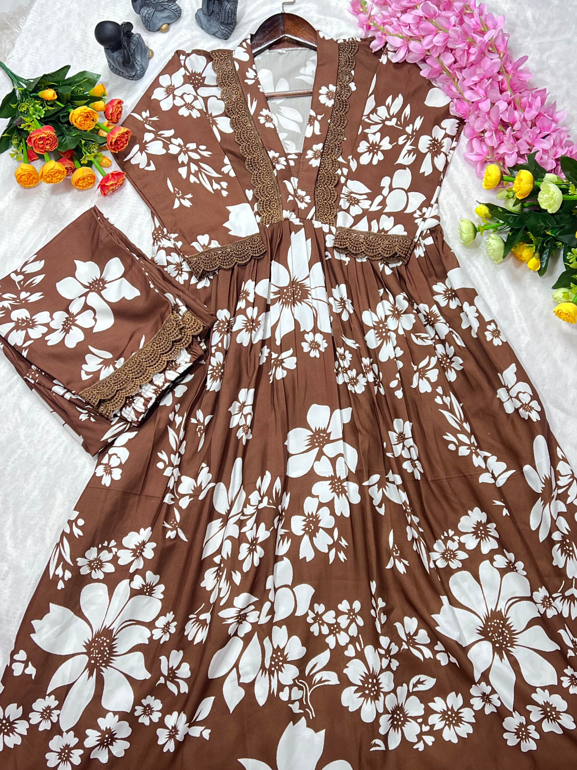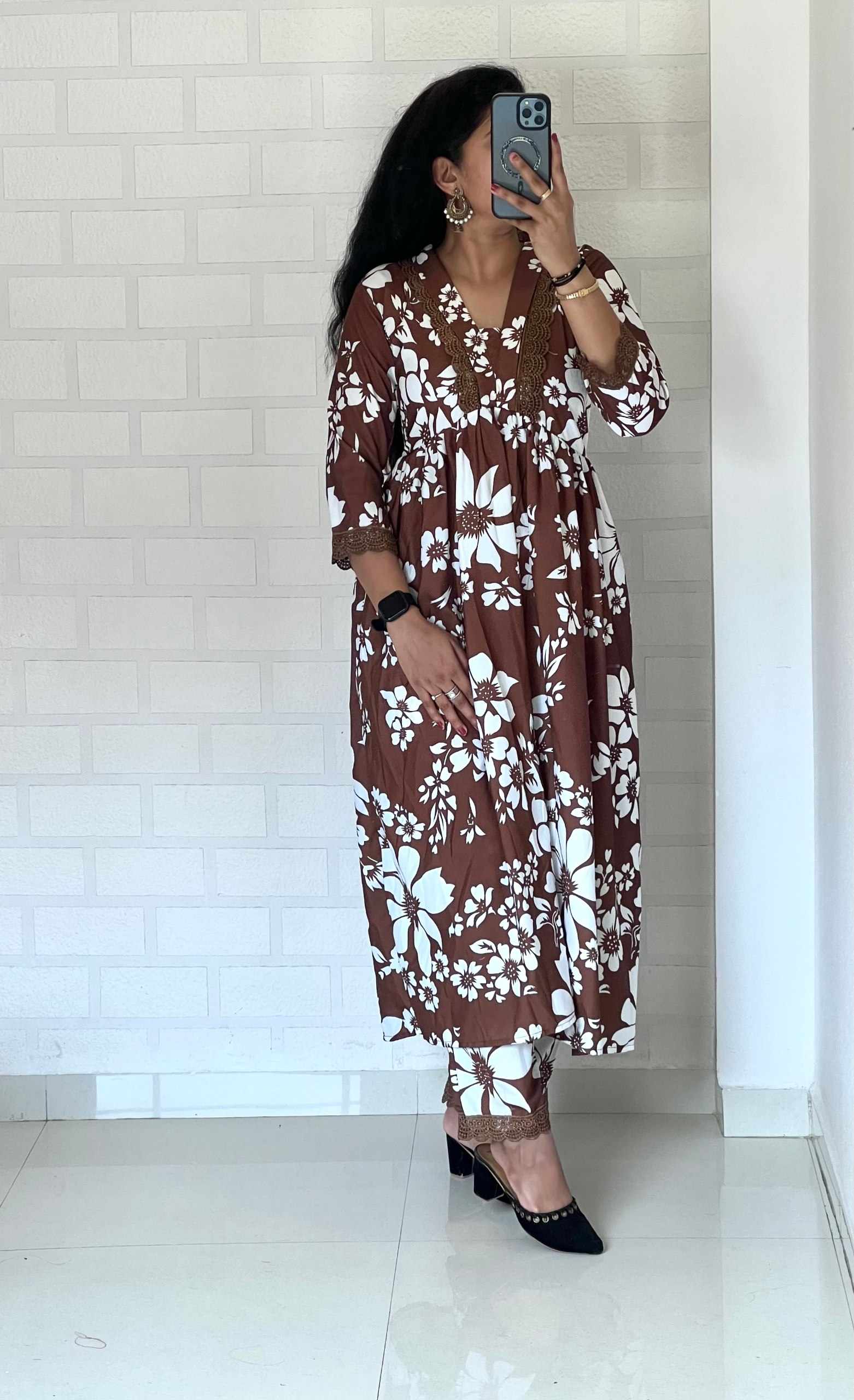 JKWH 998 Pure Fine Cotton Febric Embroidery Work A-line Kurti Set With Pocket