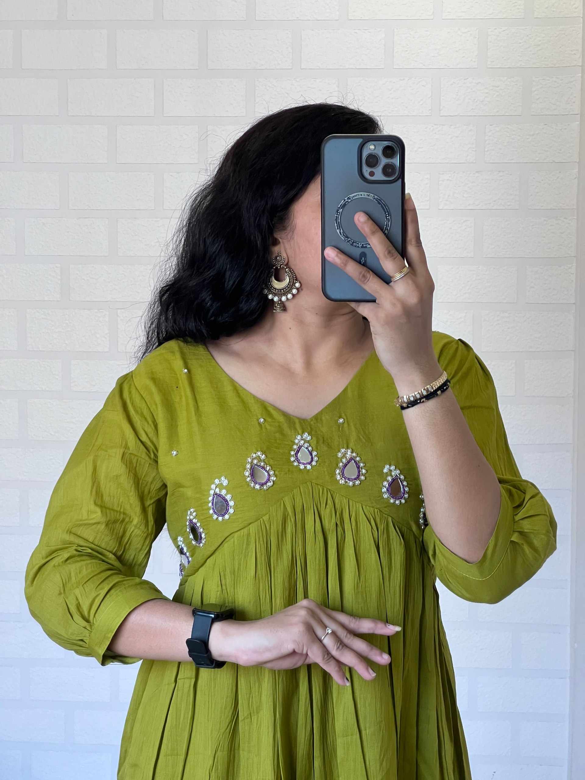 JKWH 997 Pure Fine Cotton Febric Embroidery Work A-line Kurti Set With Pocket